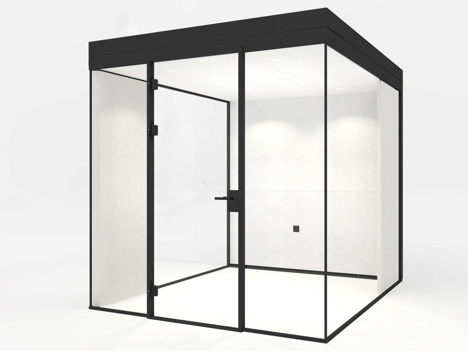 Het glas, de wanden, het plafond en de deur zijn gemaakt van materialen met een minimale Rw-waarde van 37 dB.