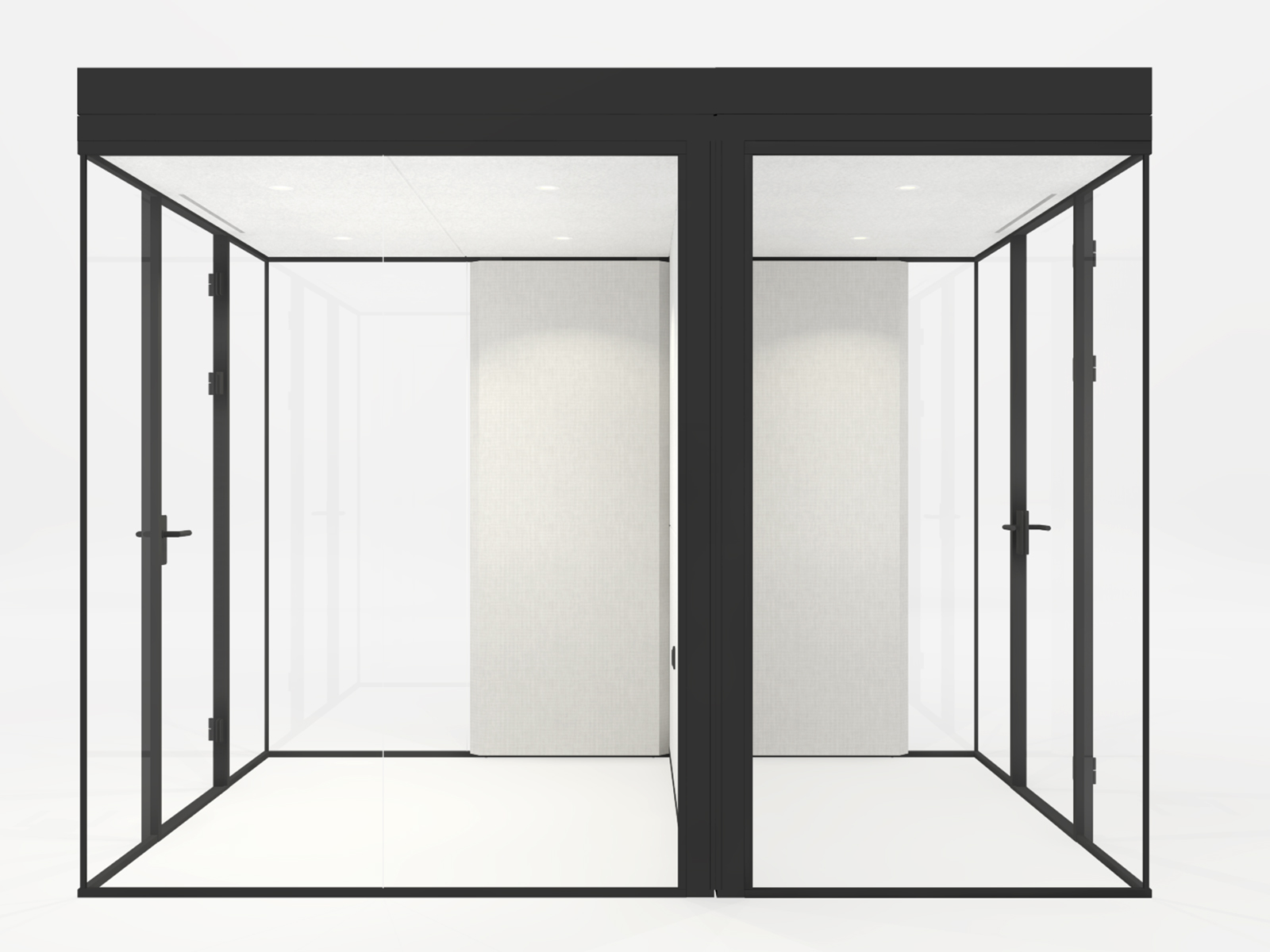 De Bubble 3G Merged is een combinatie van de twee standaard uitvoeringen van de Bubble 3G. Door deze cabines te combineren ontstaat er een mooie ruimte waar op verschillende manieren overleg plaats kan vinden.