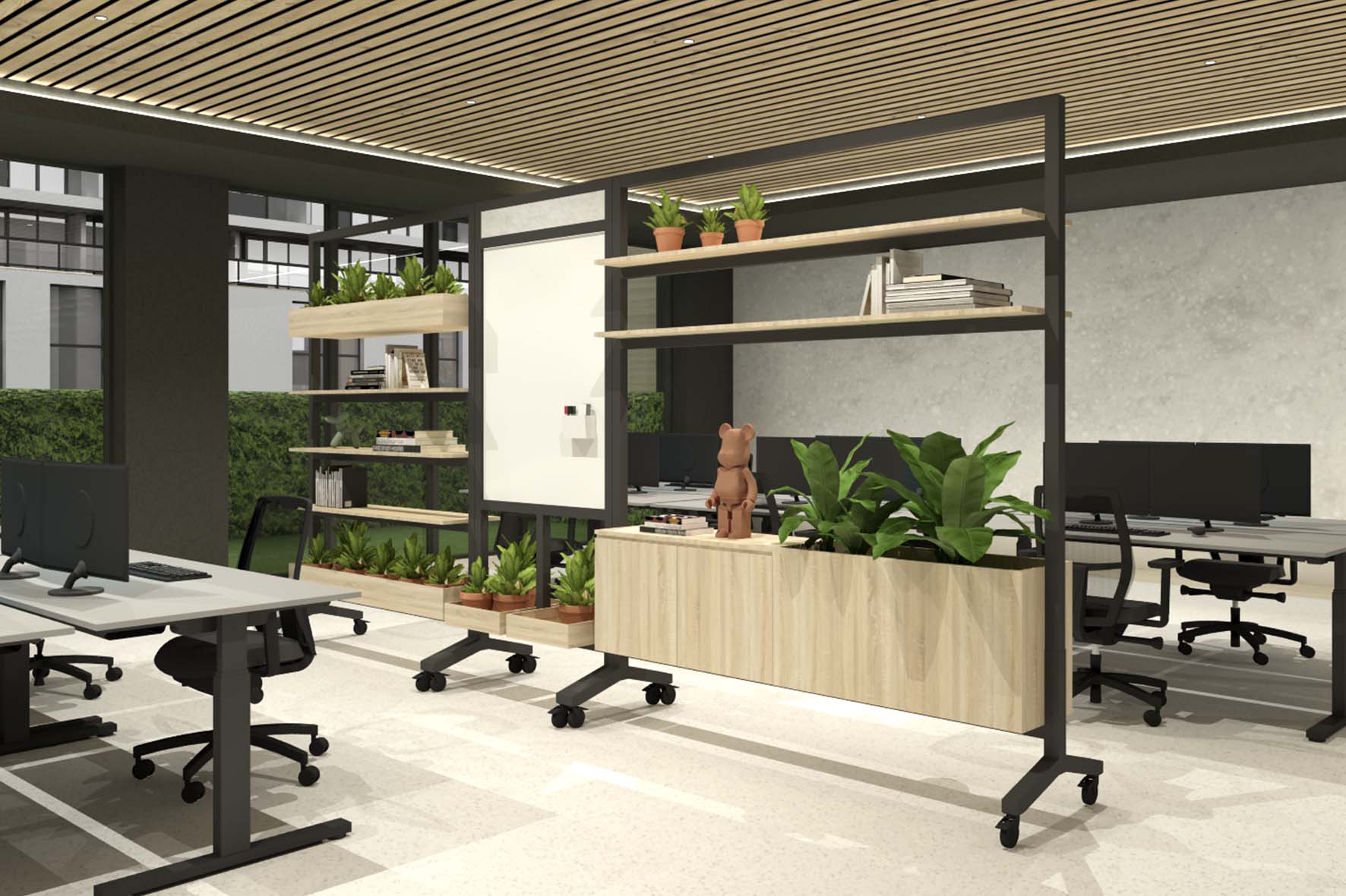 - Modulair glider paneel: combineer stijlvolle frames met panelen naar keuze: akoestisch, planten, presentatiewanden, whiteboard of opbergruimte.